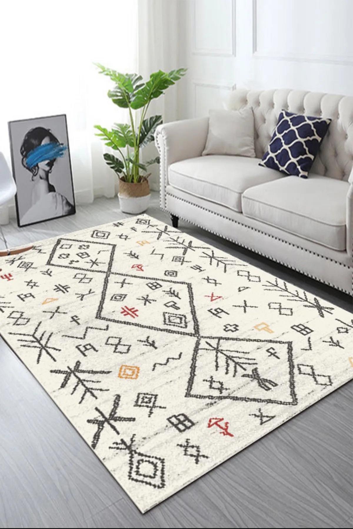 Dijital Kaymaz Yıkanabilir Etnik Salon Halısı Mutfak Halısı Koridor Halısı Halı-yolluk D4100 (CLR-4100)