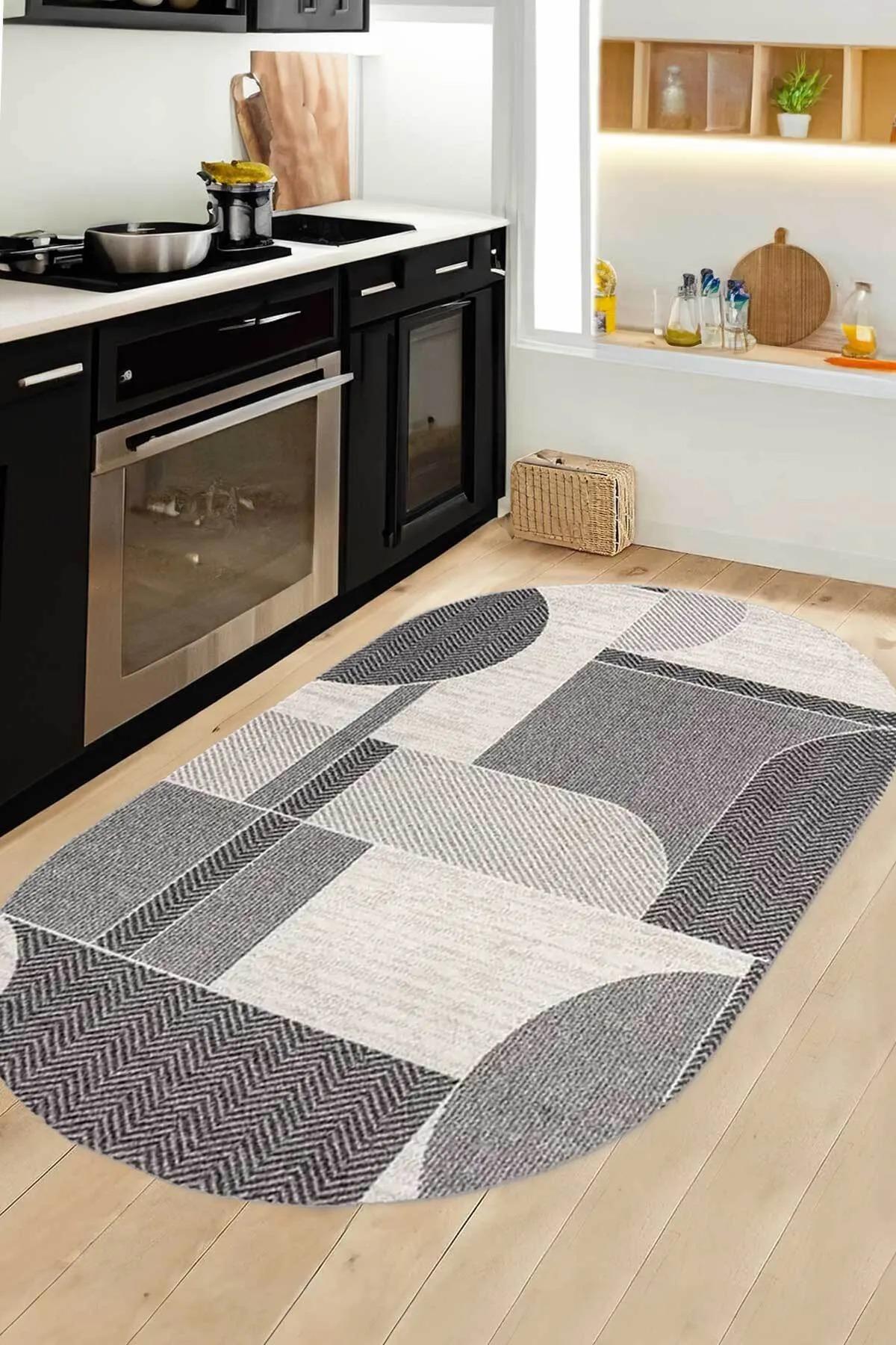 Dijital Kaymaz Yıkanabilir Gri Mutfak Halısı Salon Halısı Yolluk Mutfak Dekor DC-5085 (CLR-5085)