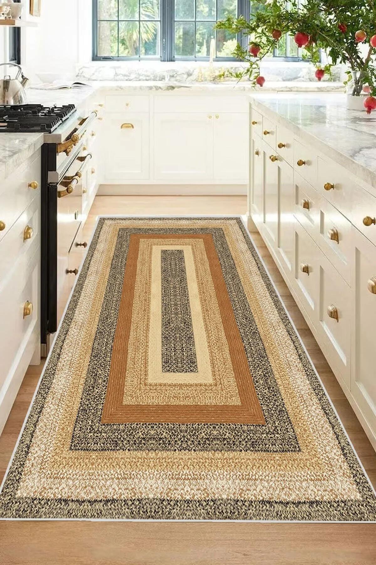 Dijital Kaymaz Yıkanabilir Hasır Jüt Görünümlü Mutfak Halısı Salon Halısı Balkon Halısı Yolluk Dc-5065 (CLR-5065)