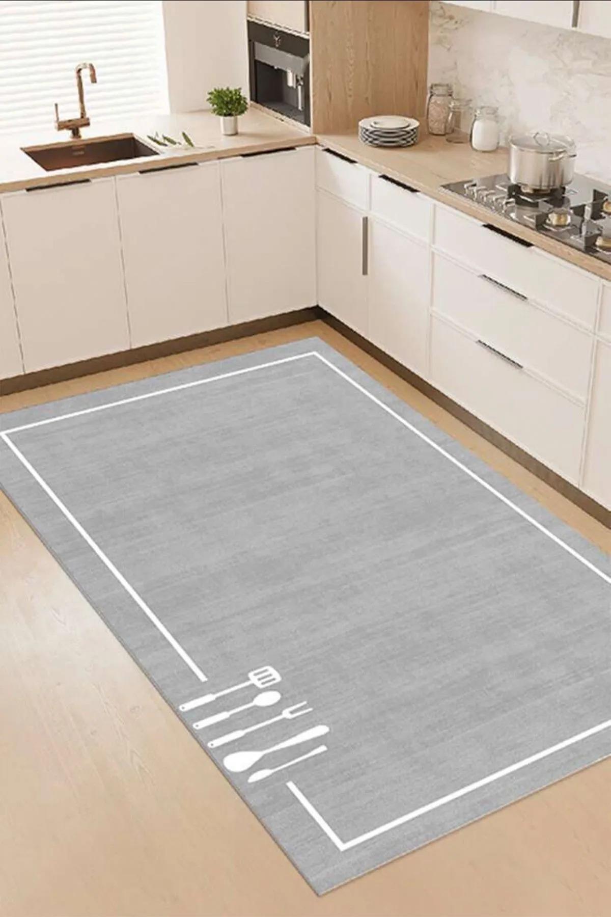 Dijital Kaymaz Yıkanabilir Modern Çerçeveli Kıtchen Mutfak Halısı Gri Mutfak Halısı Dc-5055 (CLR-5055)