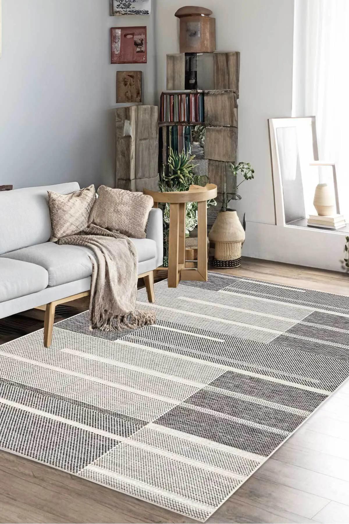 Dijital Kaymaz Yıkanabilir Modern Çizgili Salon Halısı Mutfak Halısı Koridor Halısı Yolluk DC-7203 (CLR-7203)