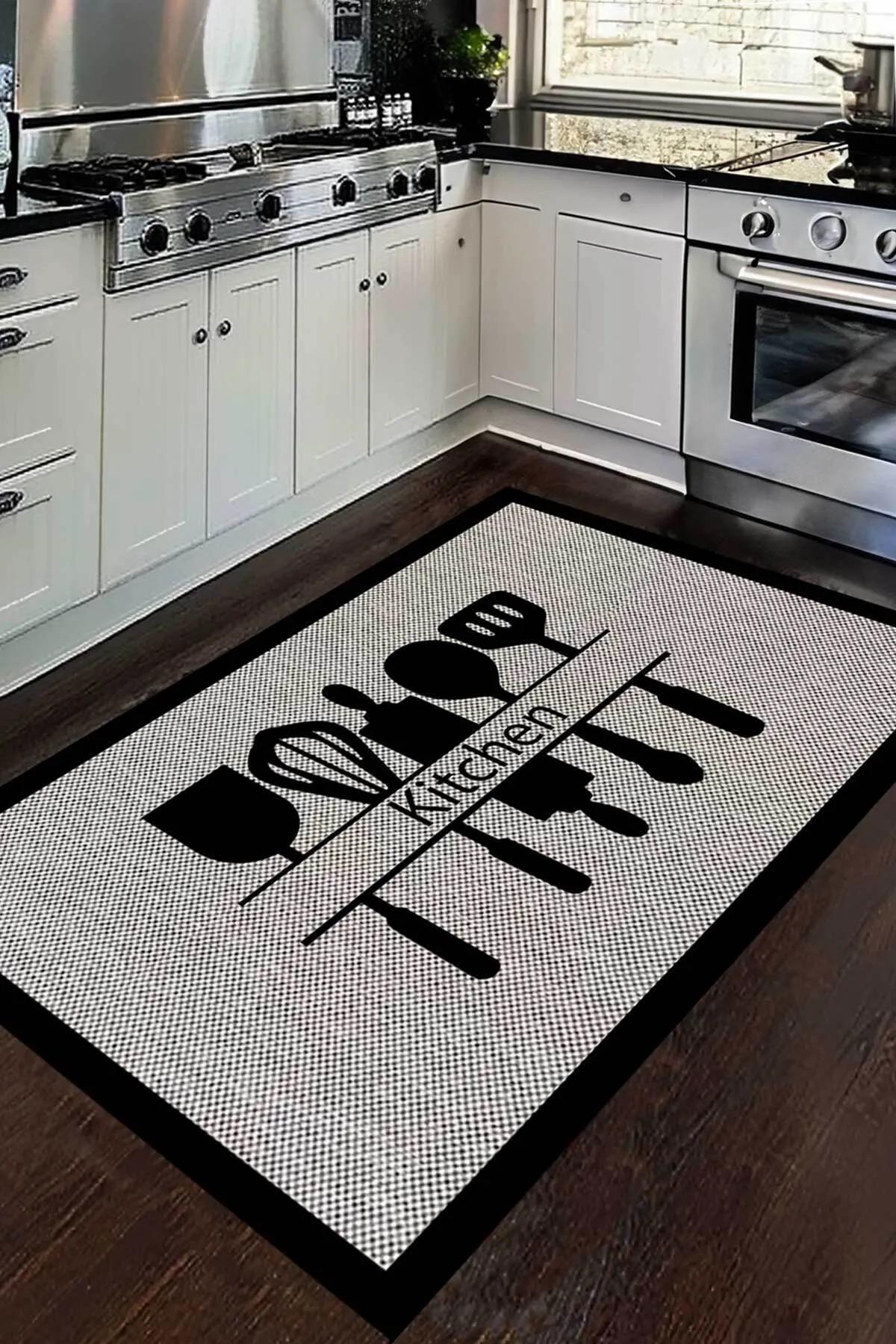 Dijital Kaymaz Yıkanabilir Modern İskandinav Mutfak Halısı Salon Halısı Yolluk DC-5081 (CLR-5081)