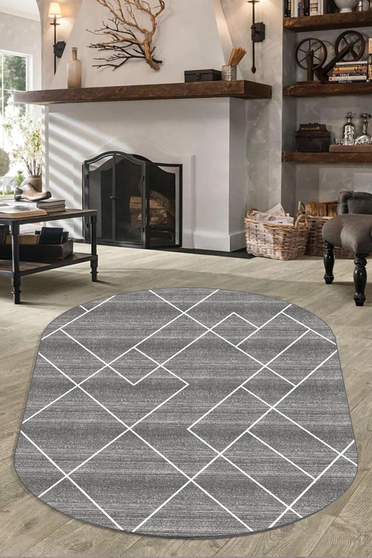 Dijital Kaymaz Yıkanabilir Modern Salon Halısı Mutfak Halısı Koridor Halısı Oval Halı Yolluk DC-4099 Oval (CLR-4099-Oval)