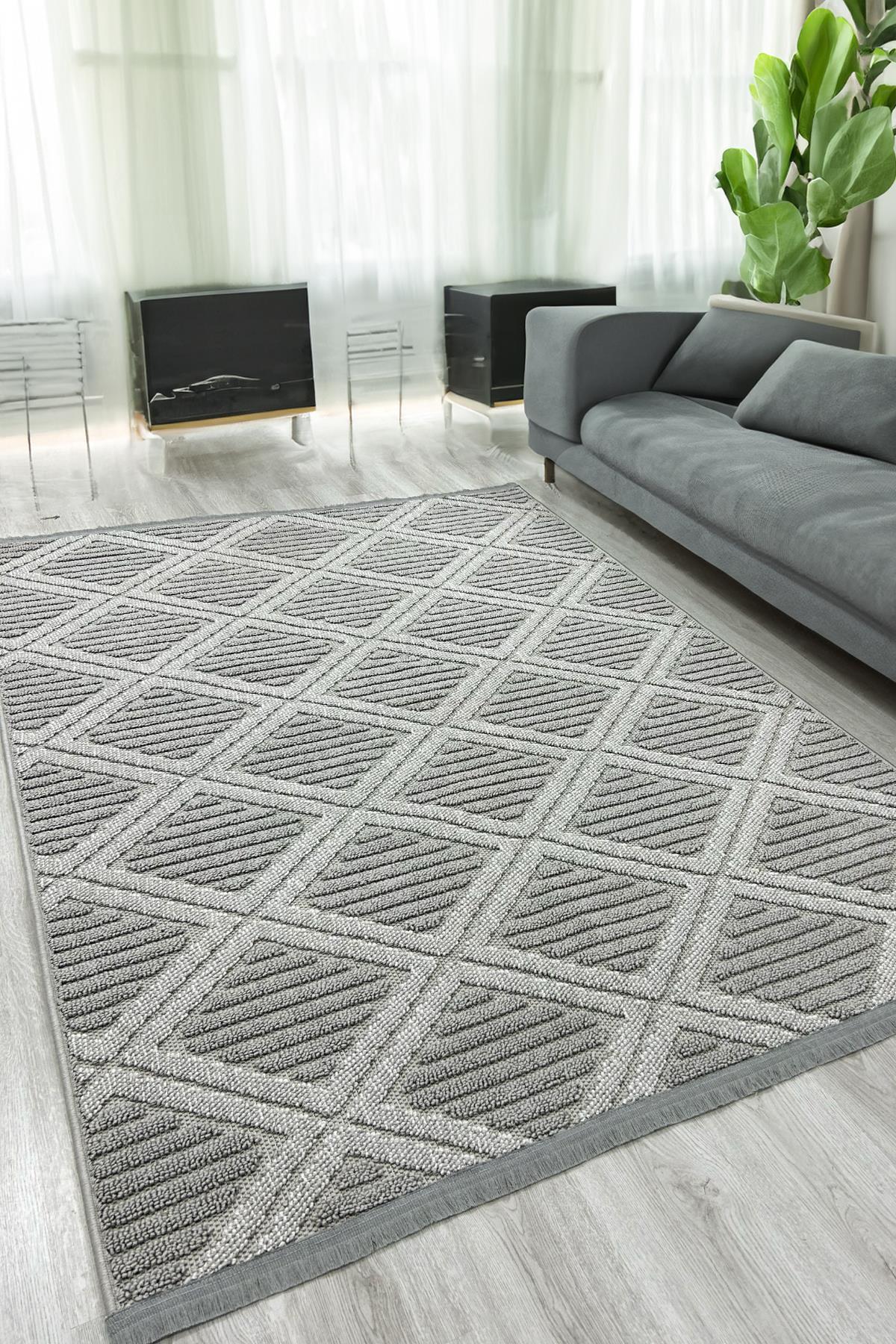 Lola İskandinav Dokuma Bukleli Gri Modern Geometrik Kaymaz Salon Halısı Mutfak Halısı Yolluk (CLR-LOLA-GRİ)